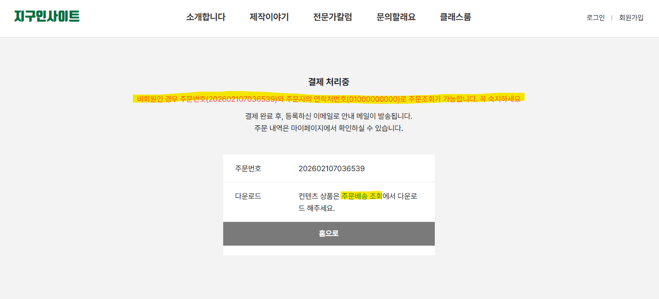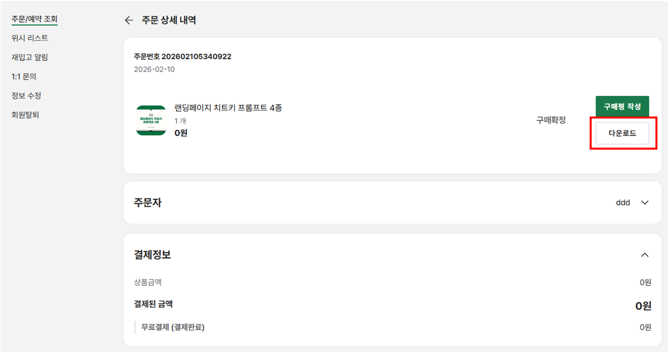 1 구매하기(0원) 후 > 주문번호와 연락처 정보 필수 확인